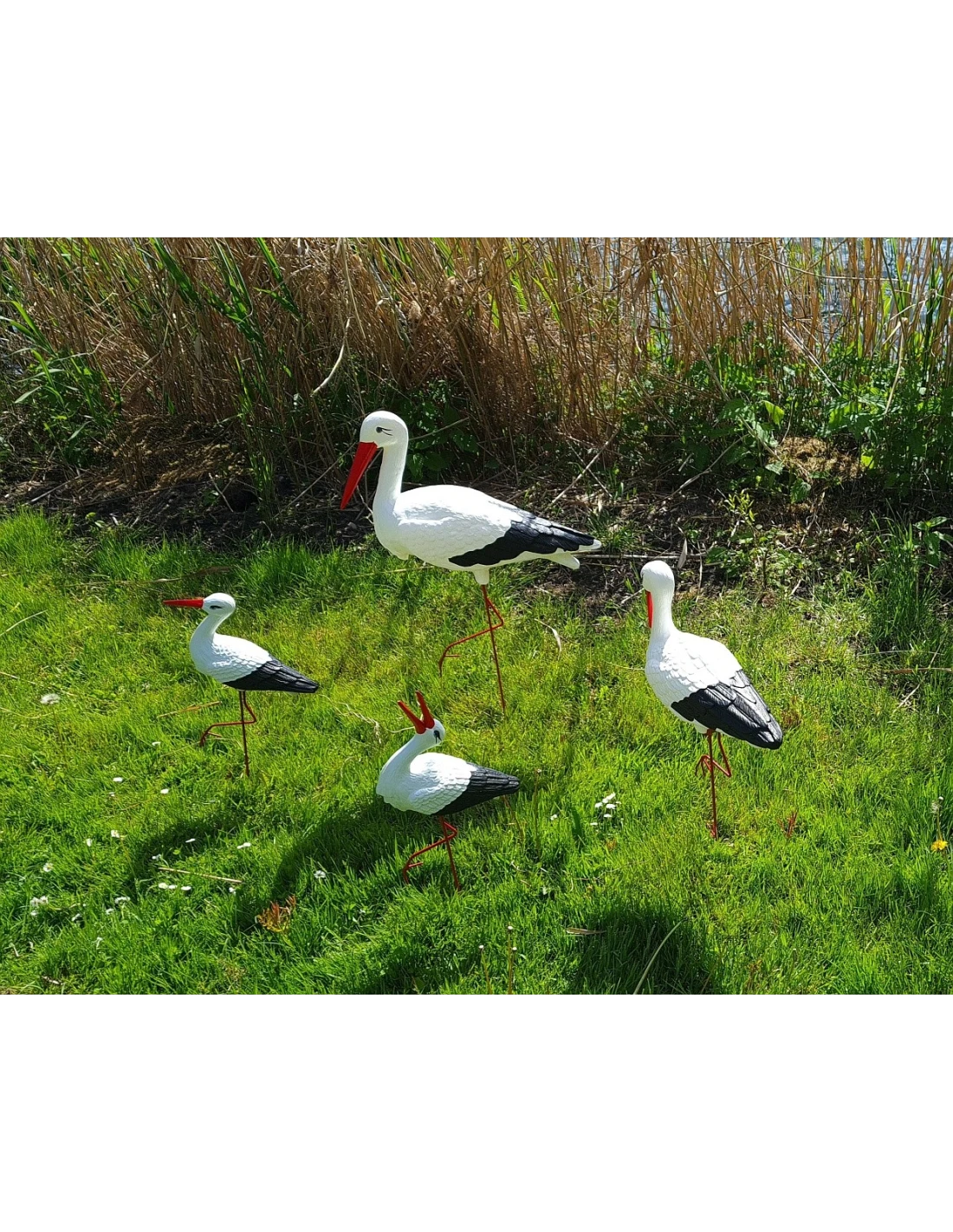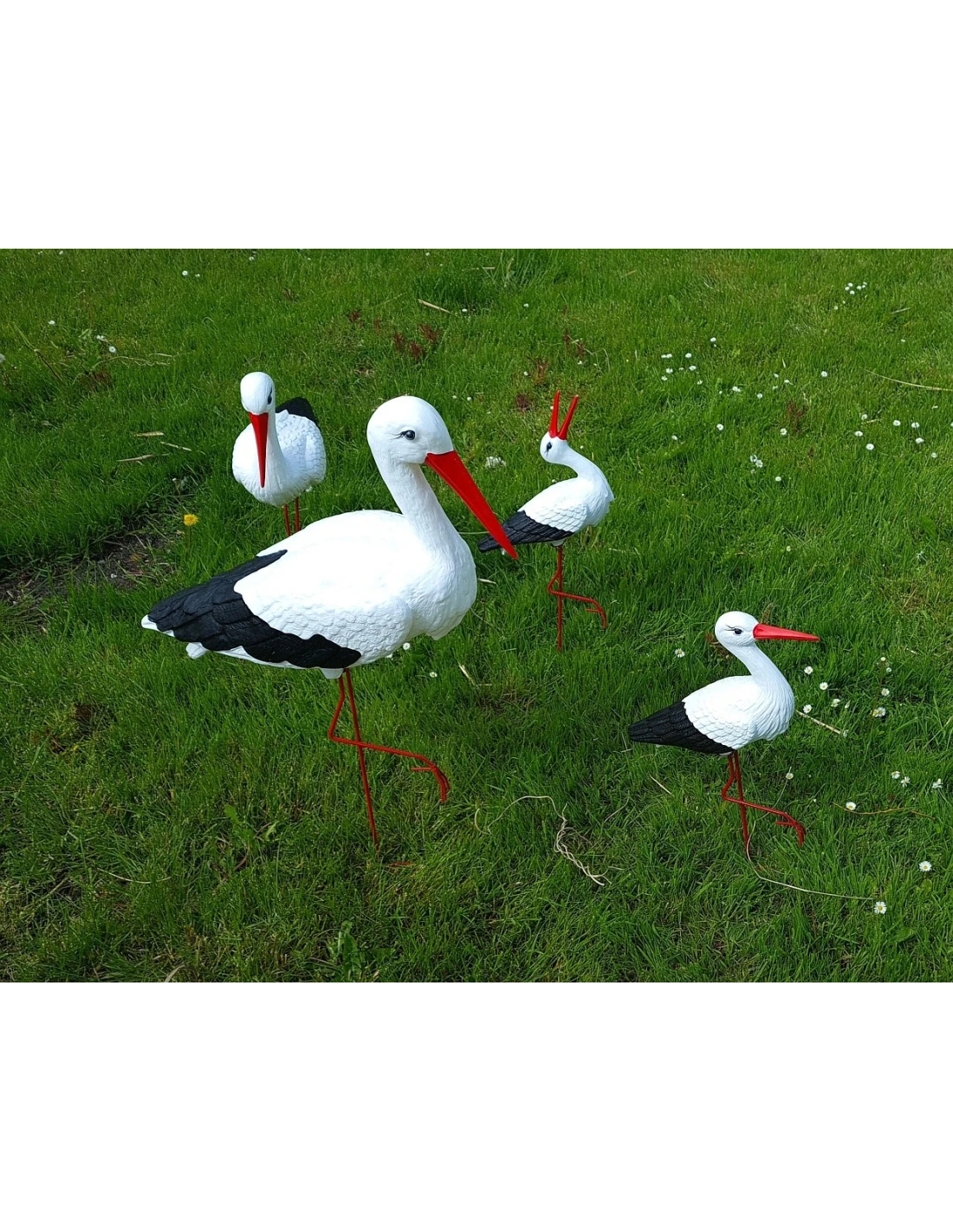 • Matériaux durables – les cigognes sont en polyuréthane résistant aux intempéries, avec des jambes en métal robuste pour une stabilité accrue.