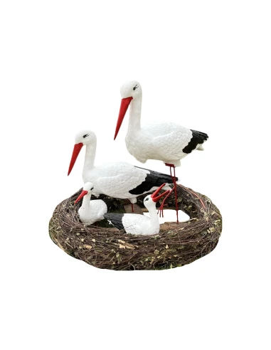 - Contenu de l’ensemble: 1 x cigogne petite, 1 x cigogne (claquement de bec), 1 x nid, 2 x grandes cigognes