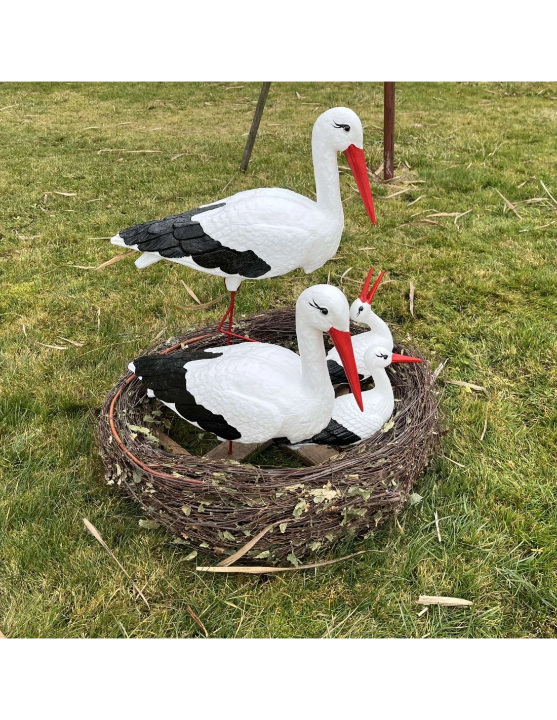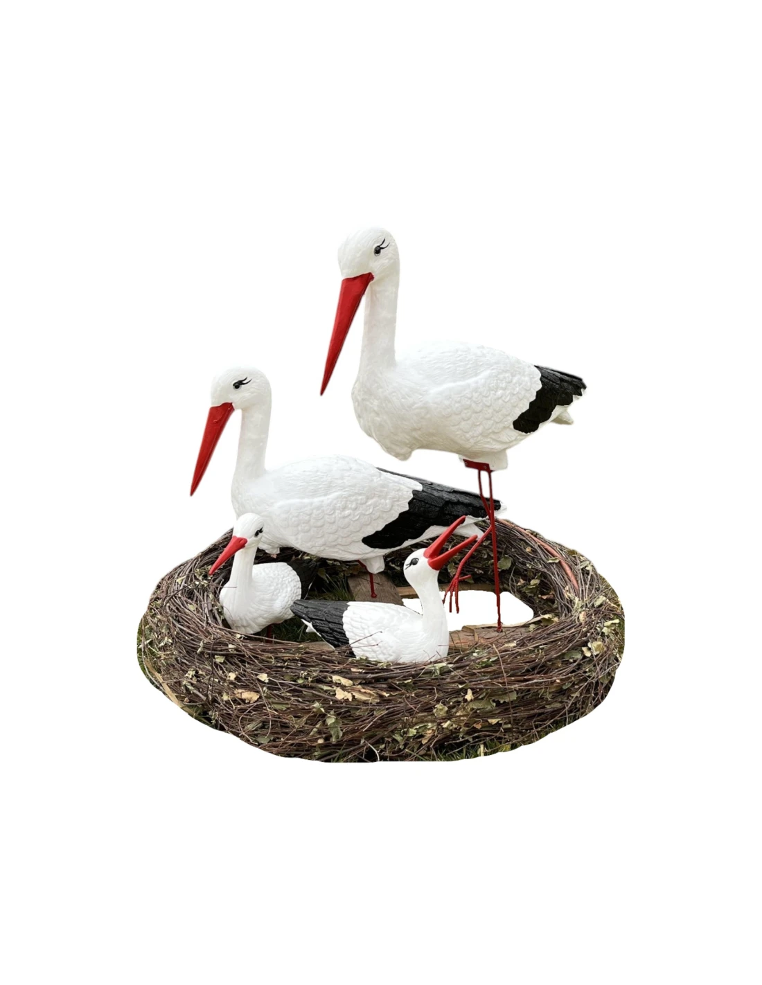 Figurine décorative nid de Cigogne 4 cigognes de Jardin décoration extérieure